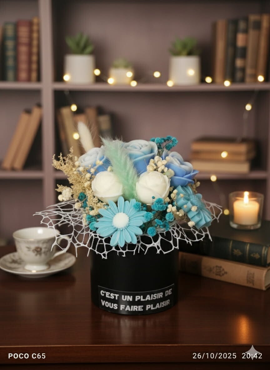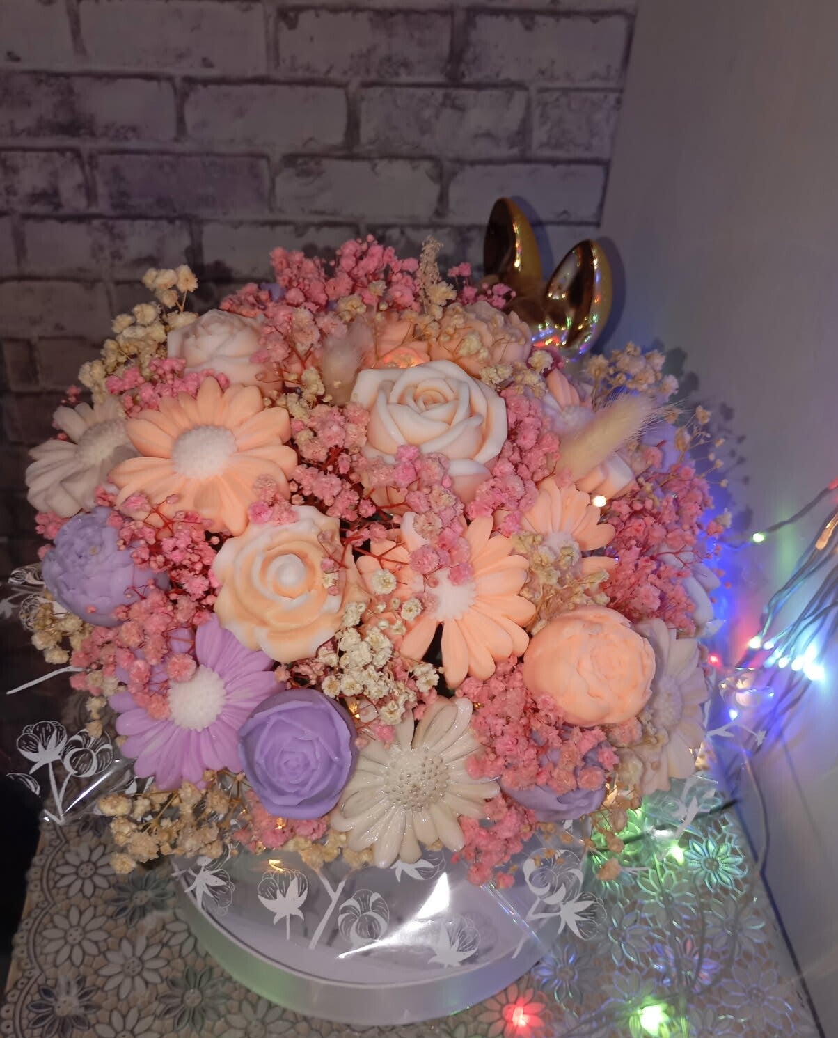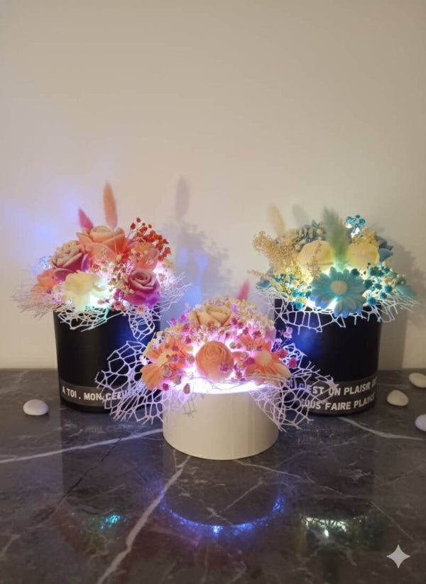 Découvrez des créations unique qui allie la beauté d'un bouquet floral au plaisir d'une bougie parfumée. Ces bouquet 'Éternel', méticuleusement conçu à la main, est une véritable œuvre d'art sensorielle qui ne se fane jamais.
